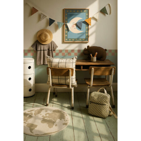 11,00 € stripeBorder Nostalgia Check is a border designed for a calm-but-fun kids’ interior. A neat grid/check pattern that adds structure without feeling busy. Use it under the ceiling, at mid-wall height, or with wainscoting to finish the room like a pro. Easy to mix with plain textiles and natural wood furniture. A small detail with big impact — designed to match and ‘close’ the wall composition.