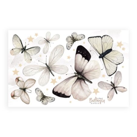 Butterfly Dance Set is a wall decal designed for a calm-but-fun kids’ interior. Little stars scattered like a calm night sky — perfect for bedtime corners. A quick way to decorate without committing to wallpaper — perfect for rentals and quick refreshes. Easy to mix with plain textiles and natural wood furniture. Printed on a special woven polyester material made for wall decoration (Dekornik’s go-to sticker base).