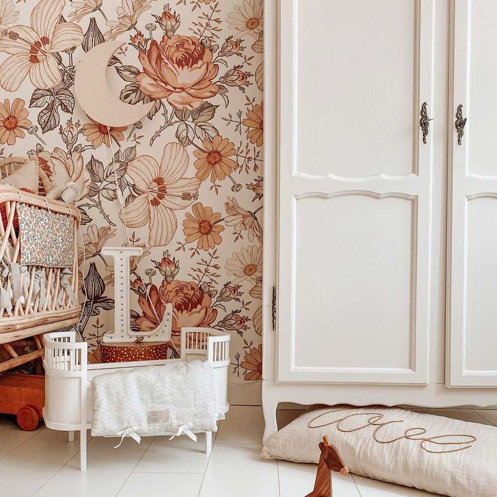 These macro scale flowers (large flowers are about 40 cm in diameter) is a strong boho accent in a girl’s room or… in her parents’ room. The thing that moved us the most in the Australian Summer theme is that it will perfectly suit the interior of either a child’s room, a living room or a bedroom (and we have seen such amazing styles as well). If you have at least a piece of wicker furniture in the room, this wallpaper is for you.