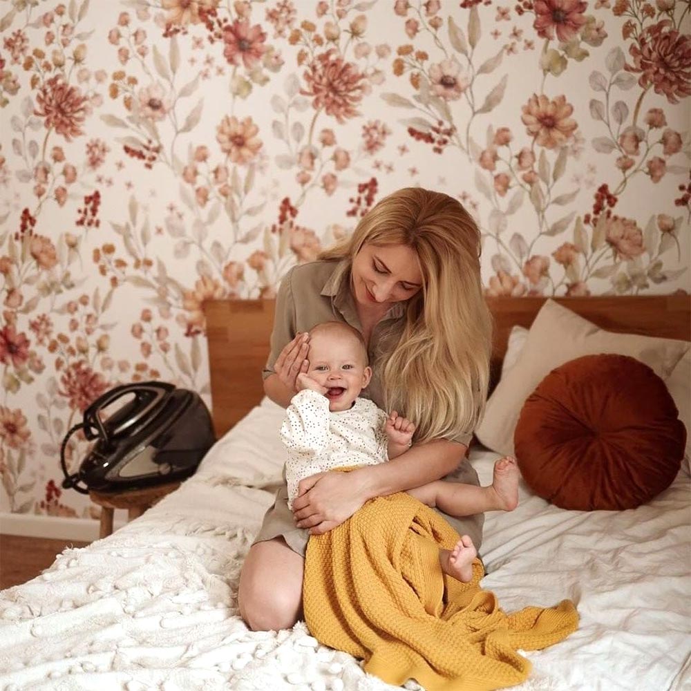 Big flowers in wonderful autumn palette is a perfect choice for a girl’s room. We’ve seen it (not once) in bedrooms where there is a little corner for a newborn.