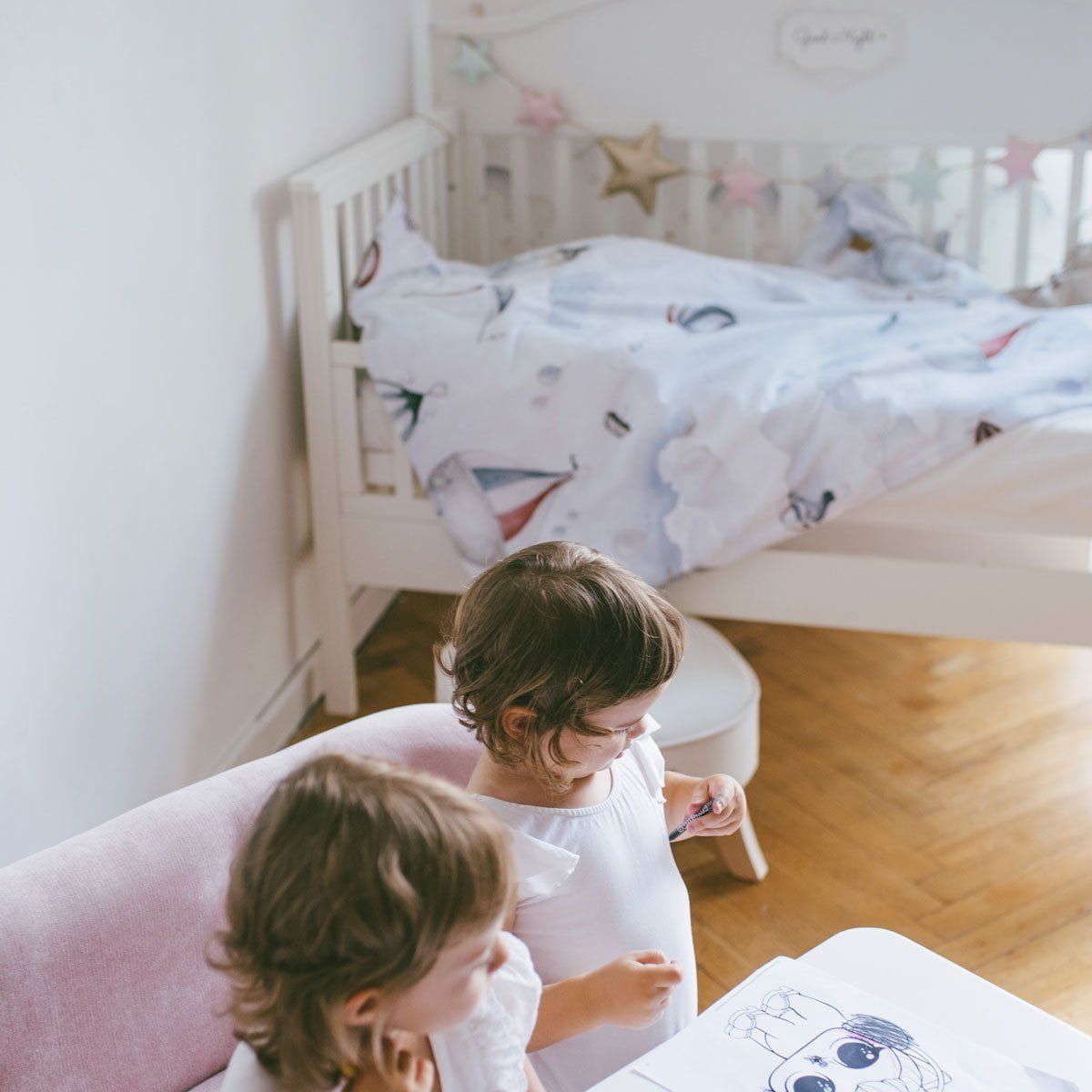 We tried very hard to find THE BEST material that will not only bring out the beautiful colors of our designs, but also be kids friendly. We were looking for the material that will not wash or shrink after being used few times. Also we tried to match printed materials with the plains materials (for the inner side of the beddings), which color must harmonise perfectly
