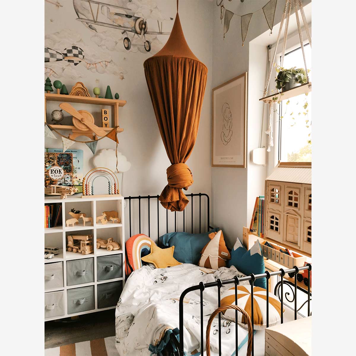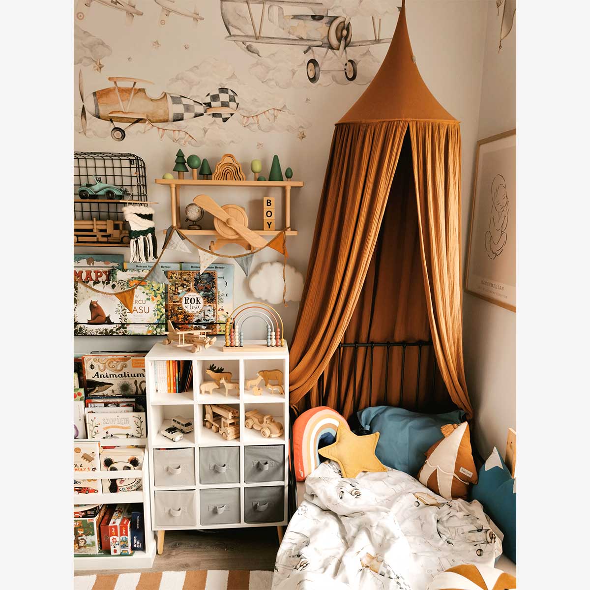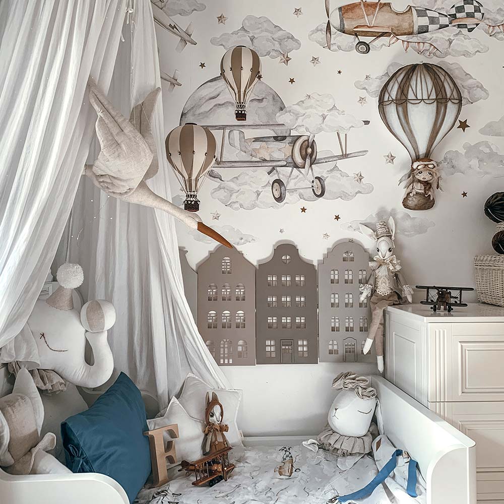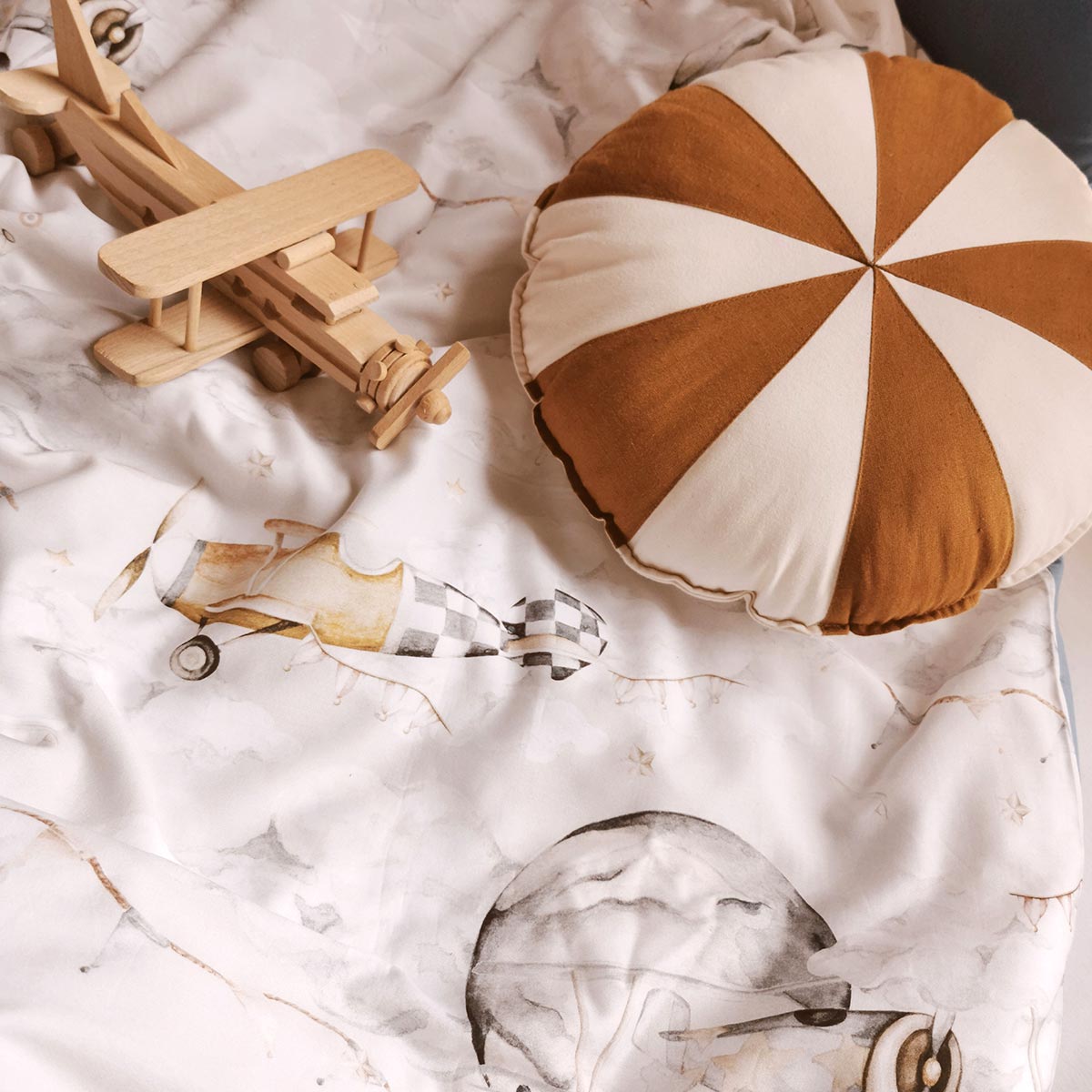 Bedding Magic Planes 100x135cm is a bedding set designed for a calm-but-fun kids’ interior. Planes/airships that make the wall feel like a tiny journey. A room-finisher: it instantly ties the whole interior together, especially with matching wall décor. Easy to mix with plain textiles and natural wood furniture. Made from certified, eco-friendly cotton with that signature retro ribbon detail.