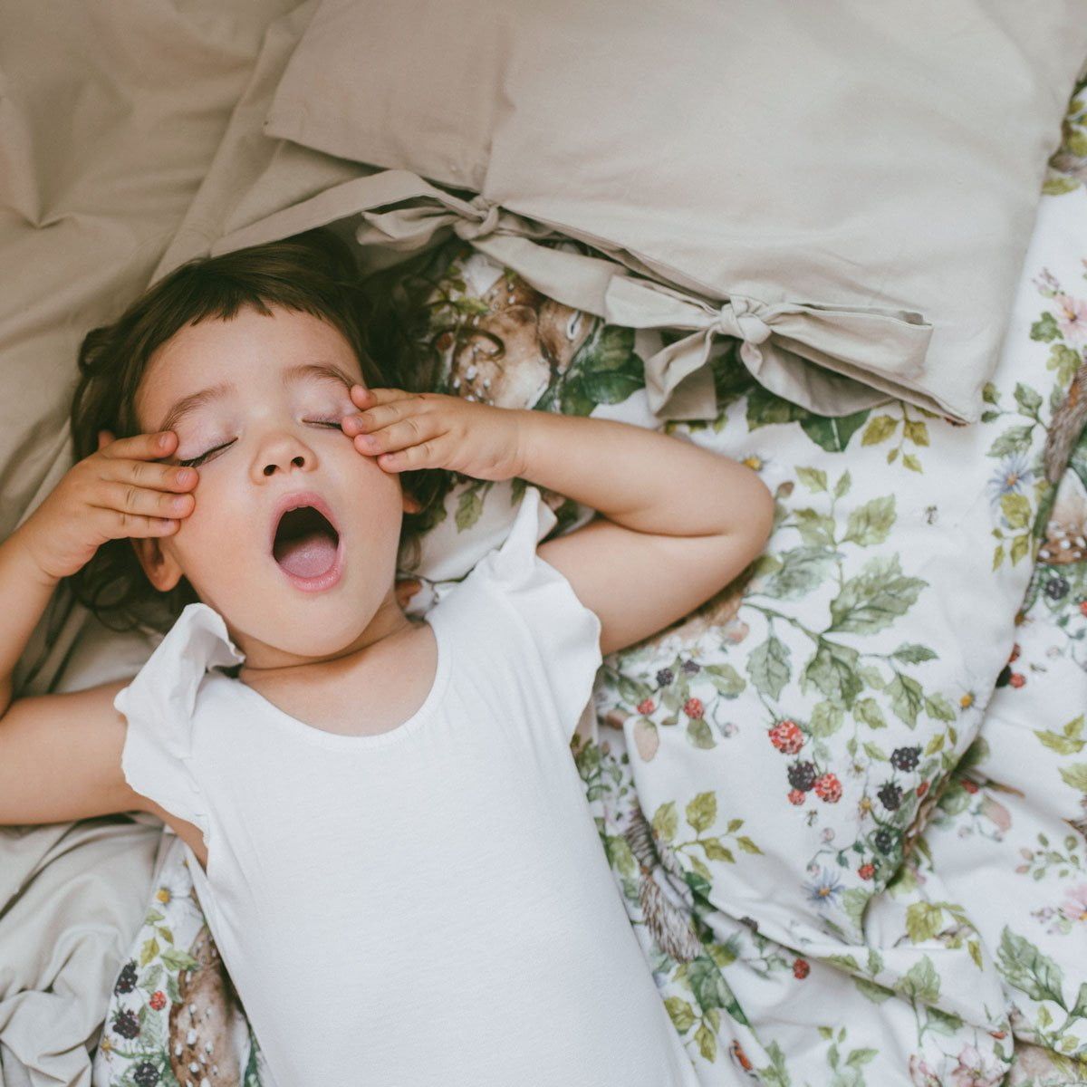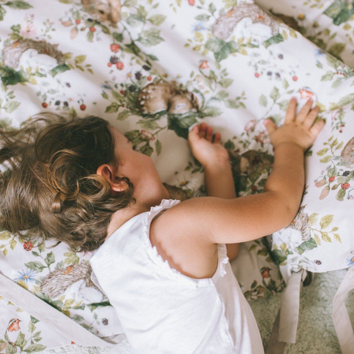 Bedding Sleepy Animals 100x135cm is a bedding set designed for a calm-but-fun kids’ interior. A hand-drawn pattern designed to feel calm, playful, and timeless. A room-finisher: it instantly ties the whole interior together, especially with matching wall décor. Easy to mix with plain textiles and natural wood furniture. Made from certified, eco-friendly cotton with that signature retro ribbon detail.