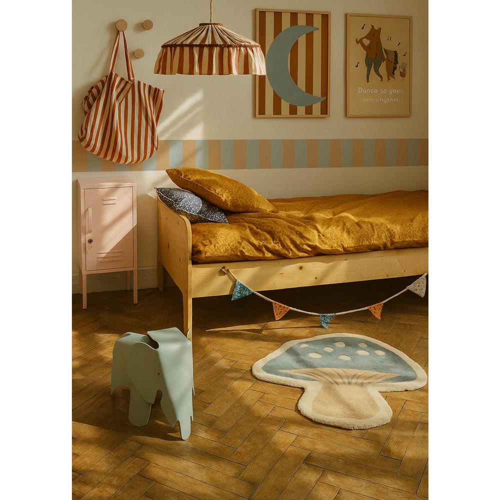 Border Wide Blue Yellow is a border in a yellow-leaning palette, designed for a calm-but-fun kids’ interior. A clean stripe repeat that reads beautifully from a distance and up close. Use it under the ceiling, at mid-wall height, or with wainscoting to finish the room like a pro. Easy to mix with plain textiles and natural wood furniture. A small detail with big impact — designed to match and ‘close’ the wall composition.
