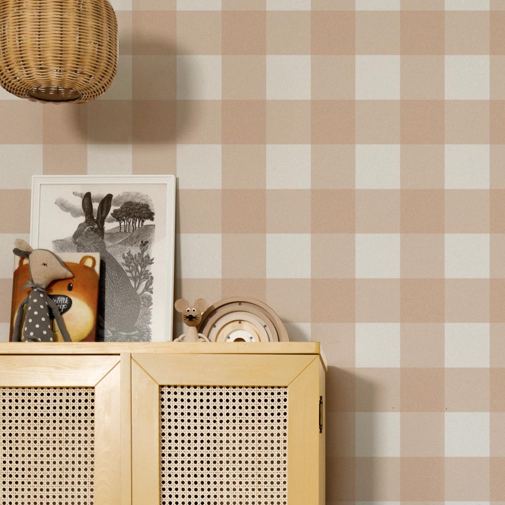 Check Classic Peach Wallpaper is a wallpaper designed for a calm-but-fun kids’ interior. A clean stripe repeat that reads beautifully from a distance and up close. Best as a feature wall behind a crib/bed, or wrap the whole room if you love the pattern. Pair it with a matching border to ‘frame’ the wall and lift the whole look. Printed on Dekornik’s refined matte paper (snow-white, durable) and made with an eco & safety mindset.