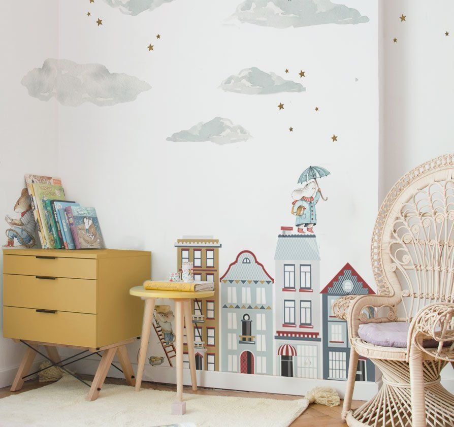 Clouds In The Sky Set is a wall decal designed for a calm-but-fun kids’ interior. Soft clouds floating across the wall — light, airy, and instantly soothing. A quick way to decorate without committing to wallpaper — perfect for rentals and quick refreshes. Easy to mix with plain textiles and natural wood furniture. Printed on a special woven polyester material made for wall decoration (Dekornik’s go-to sticker base).