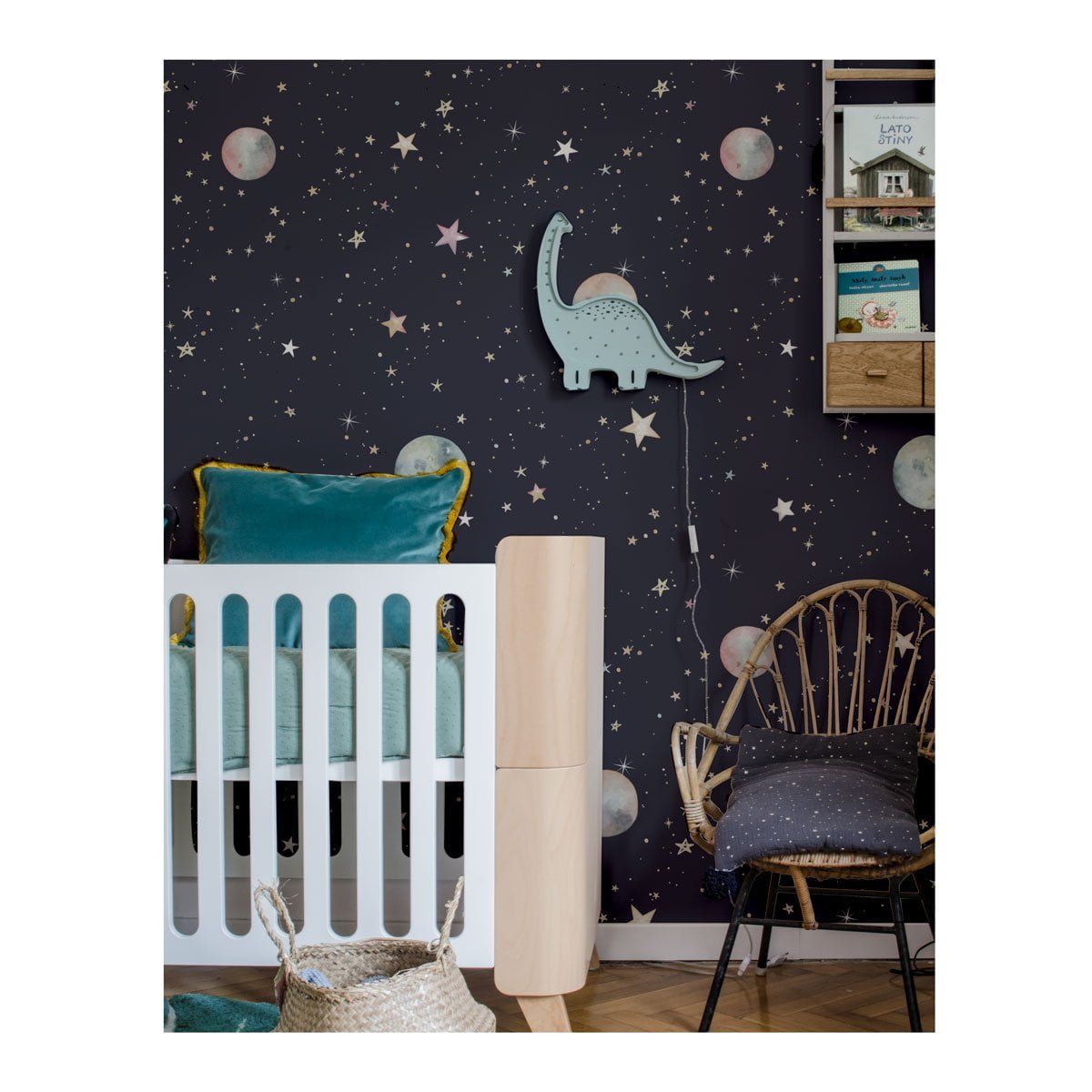 Cosmos Wallpaper is a wallpaper designed for a calm-but-fun kids’ interior. A clean stripe repeat that reads beautifully from a distance and up close. Best as a feature wall behind a crib/bed, or wrap the whole room if you love the pattern. Pair it with a matching border to ‘frame’ the wall and lift the whole look. Add decals in the same mood for a layered, story-like wall. Printed on Dekornik’s refined matte paper (snow-white, durable) and made with an eco & safety mindset.