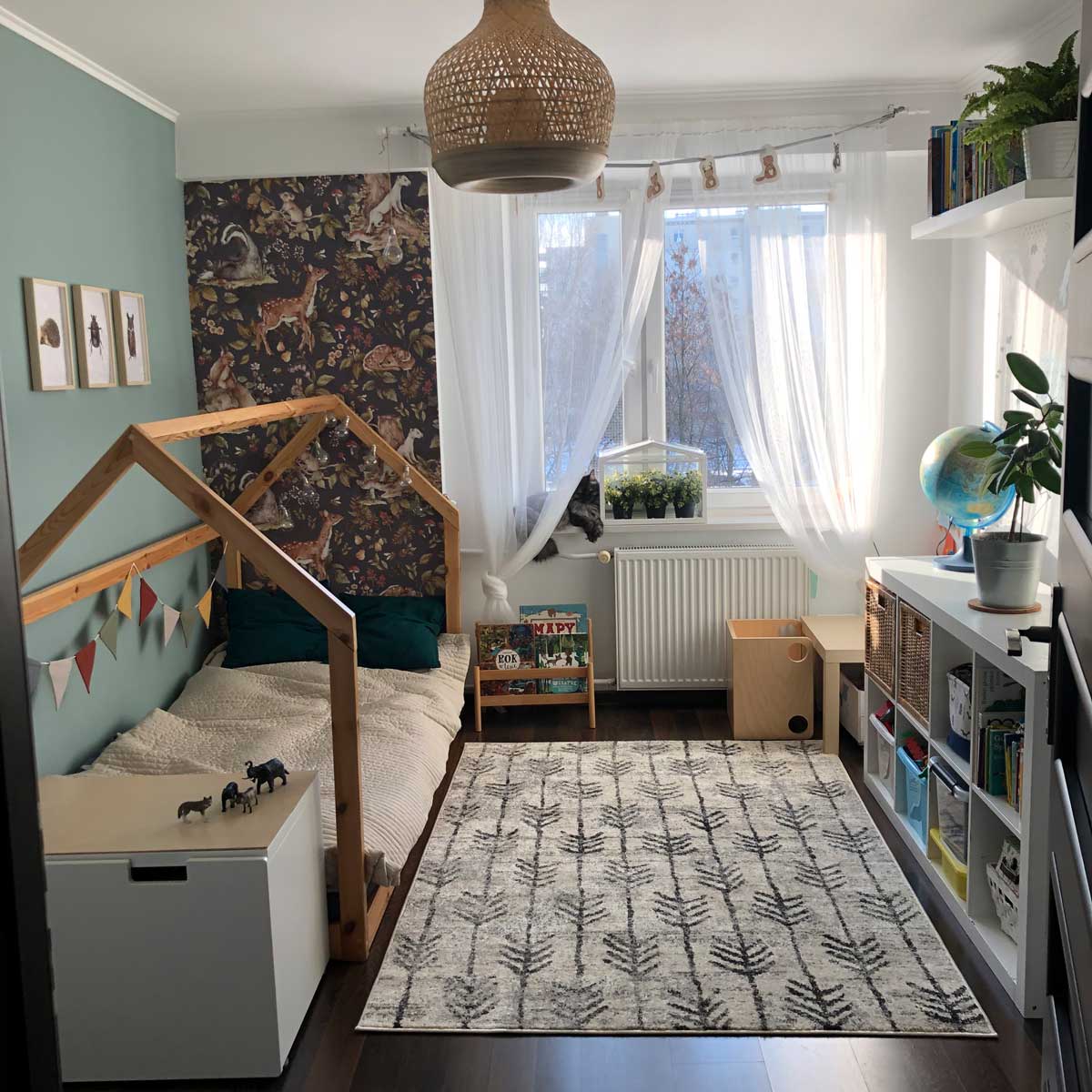 Cute forest animals Dark Wallpaper is a wallpaper designed for a calm-but-fun kids’ interior. A clean stripe repeat that reads beautifully from a distance and up close. Best as a feature wall behind a crib/bed, or wrap the whole room if you love the pattern. Easy to mix with plain textiles and natural wood furniture. Printed on Dekornik’s refined matte paper (snow-white, durable) and made with an eco & safety mindset.