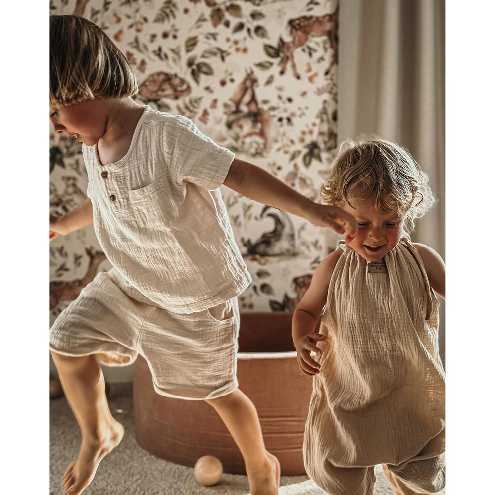 Cute forest animals Light Wallpaper is a wallpaper designed for a calm-but-fun kids’ interior. A clean stripe repeat that reads beautifully from a distance and up close. Best as a feature wall behind a crib/bed, or wrap the whole room if you love the pattern. Easy to mix with plain textiles and natural wood furniture. Printed on Dekornik’s refined matte paper (snow-white, durable) and made with an eco & safety mindset.