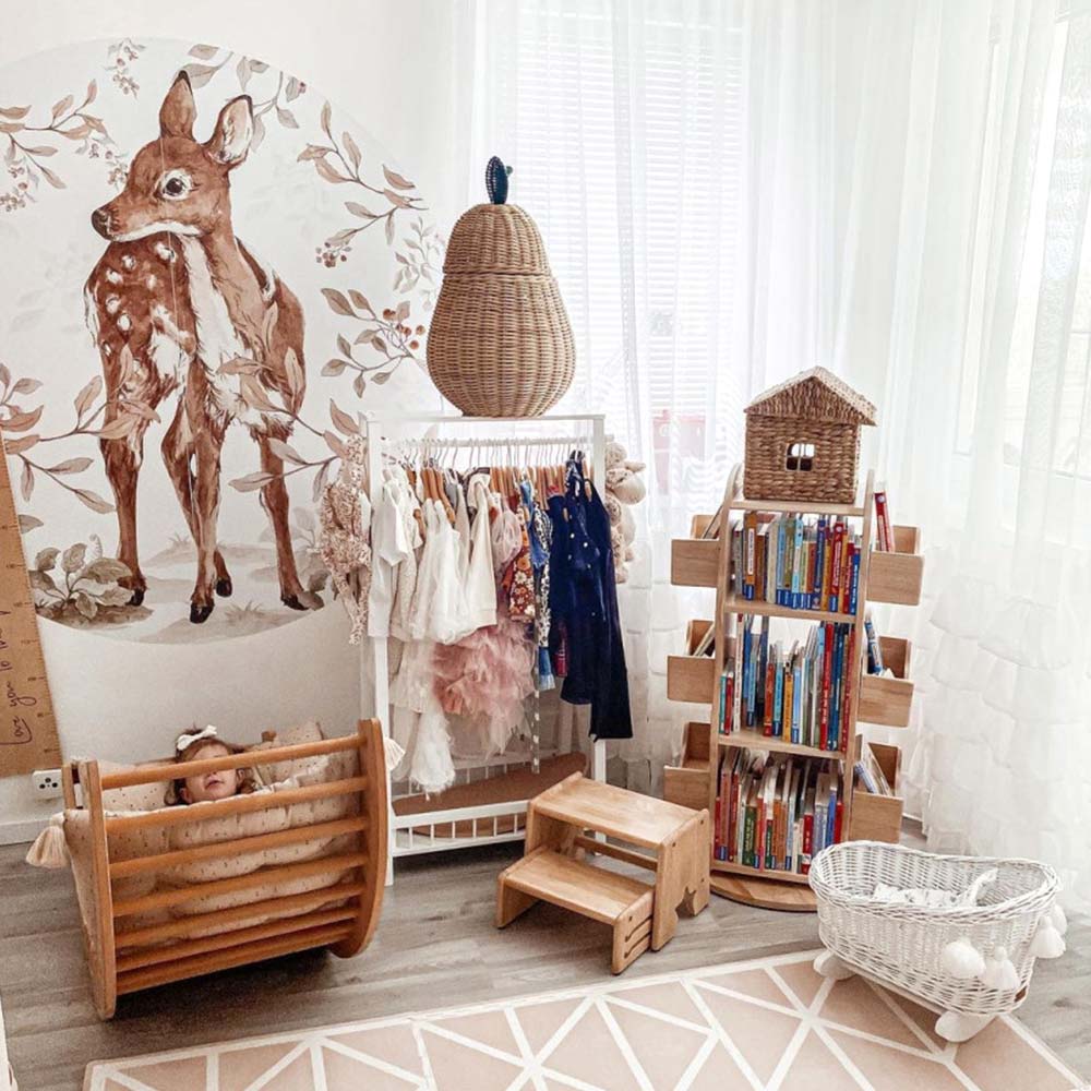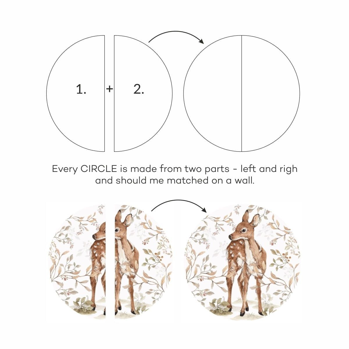 Deer In A Circle is a wall decal designed for a calm-but-fun kids’ interior. A statement floral print with lots of detail — it can be the main décor in the room. A quick way to decorate without committing to wallpaper — perfect for rentals and quick refreshes. Easy to mix with plain textiles and natural wood furniture. Printed on a special woven polyester material made for wall decoration (Dekornik’s go-to sticker base).