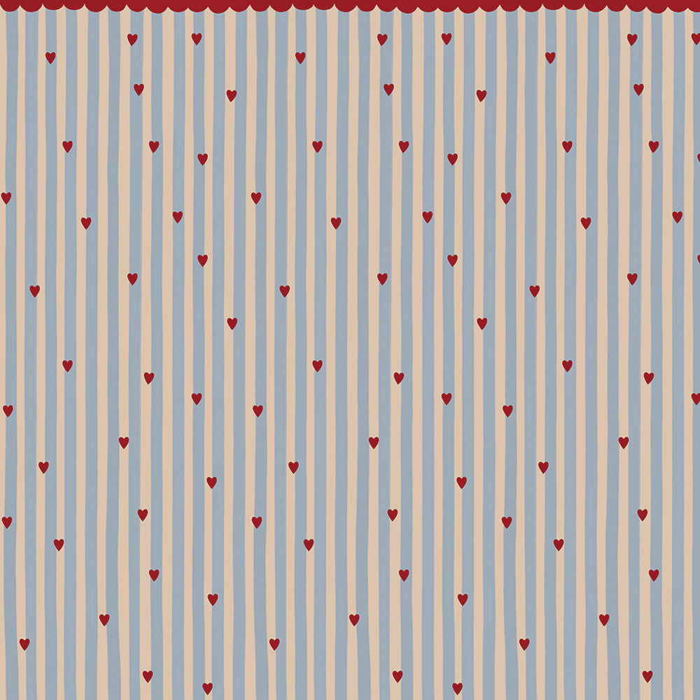 Our patterns are heavily inspired by France. This wallpaper feels so wonderfully French, we even named it that. Beautiful pastel stripes with 5 cm dark red hearts. We’ve topped this wallpaper with a garland in the same color to give it an even more fairytale feel.