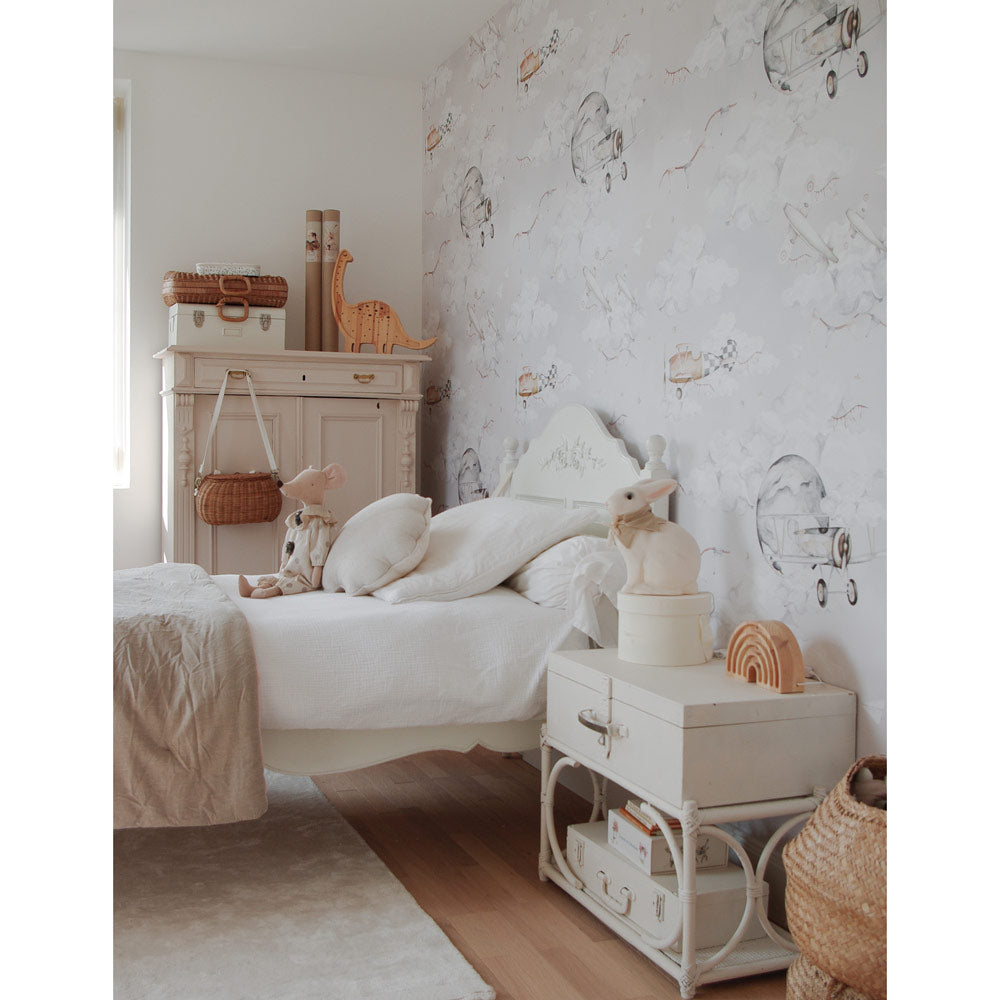 Magic Planes Wallpaper is a wallpaper designed for a calm-but-fun kids’ interior. A clean stripe repeat that reads beautifully from a distance and up close. Works beautifully on one accent wall or all walls for a fully wrapped room. Easy to mix with plain textiles and natural wood furniture. Printed on Dekornik’s refined matte paper (snow-white, durable) and made with an eco & safety mindset.