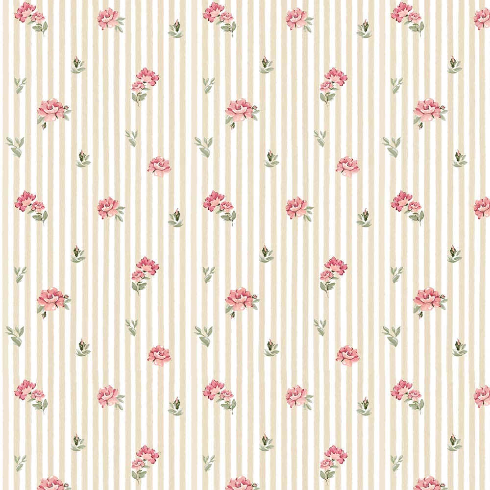 Small lovely roses on beige stripes. You will not find a cuter wallpaper!