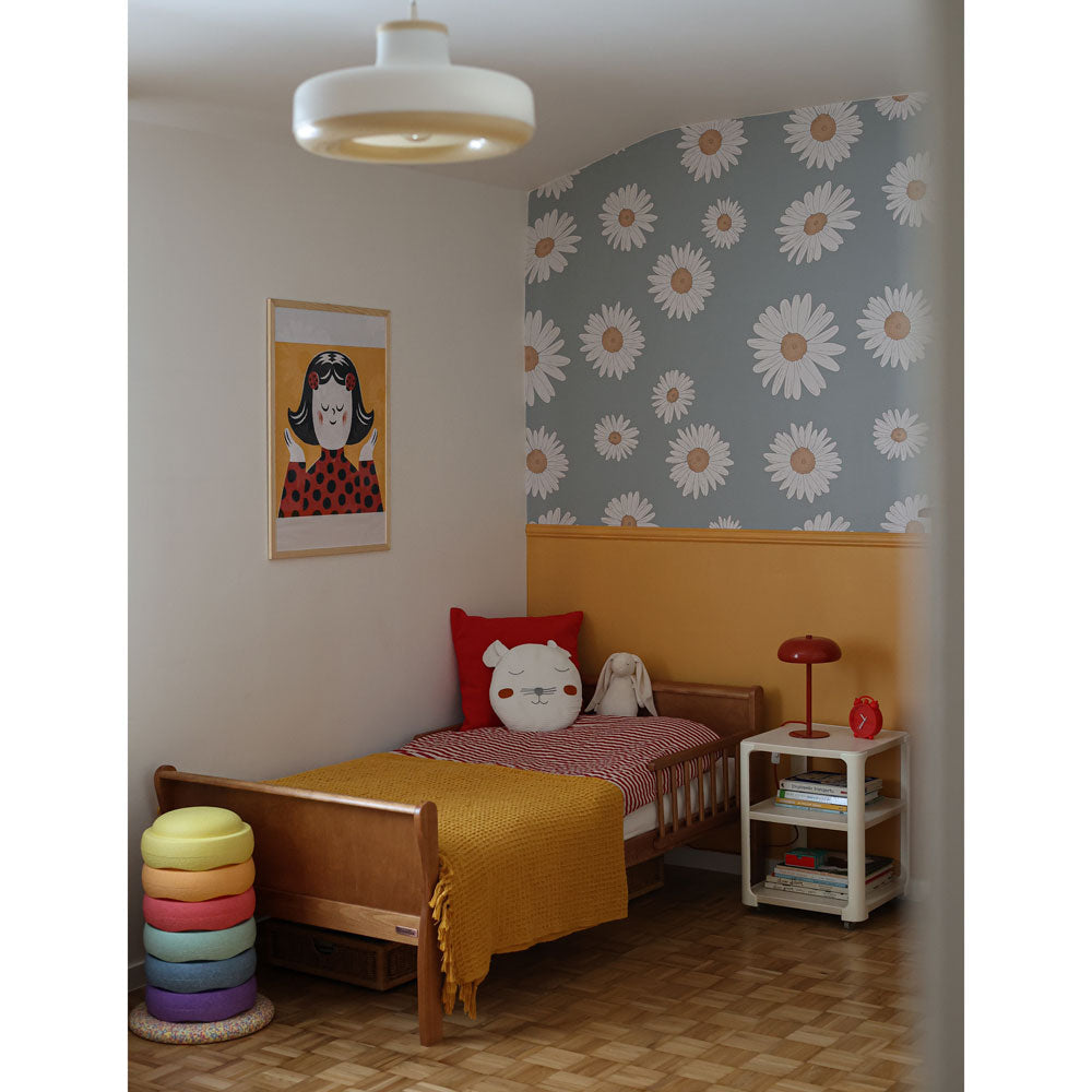 Tuscan Daisies Blue Wallpaper is a wallpaper designed for a calm-but-fun kids’ interior. A clean stripe repeat that reads beautifully from a distance and up close. Works beautifully on one accent wall or all walls for a fully wrapped room. Easy to mix with plain textiles and natural wood furniture. Printed on Dekornik’s refined matte paper (snow-white, durable) and made with an eco & safety mindset.