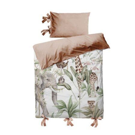47,40 €Bedding Savanna 100x135cm is a bedding set designed for a calm-but-fun kids’ interior. Safari-inspired characters and warm adventure mood. A room-finisher: it instantly ties the whole interior together, especially with matching wall décor. Easy to mix with plain textiles and natural wood furniture. Made from certified, eco-friendly cotton with that signature retro ribbon detail.